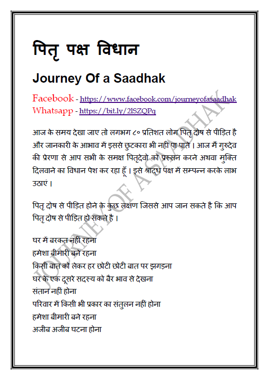 Pitra Paksh Vidhaan – Journey of a Saadhak Booklet.